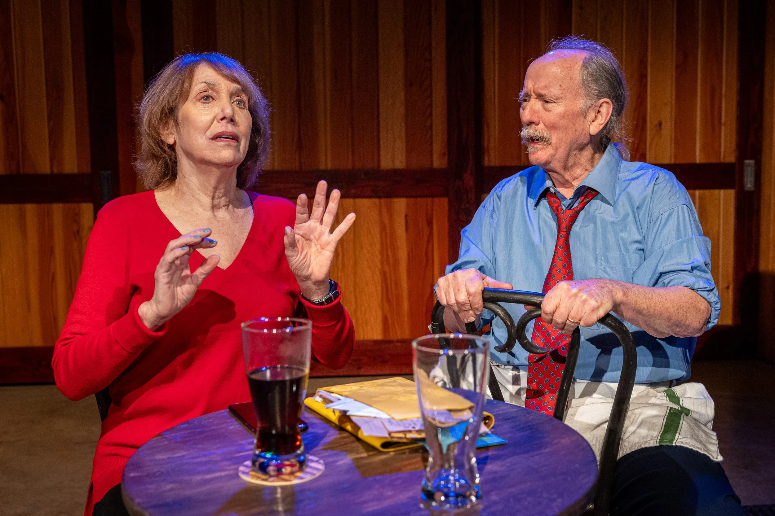 Two kindred spirits —Stella, played by Linda Alper, and Lou, played by Michael J. Hume — seek solace as they navigate changing times and relationships past in Rogue Theater Company’s production of “Stella and Lou.” (Photo by Bob Palermini)THEATER REVIEW: Rogue Theatre Company’s Stella & Lou finds ‘the beauty of discomfort’
